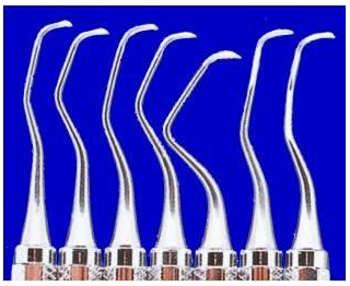 Curetas P.L. (Pádua Lima) n° 1, 2 e 3: são instrumentos grandes e robustos com grande poder e raspagem e torque, com utilidade no tratamento de furcas.
