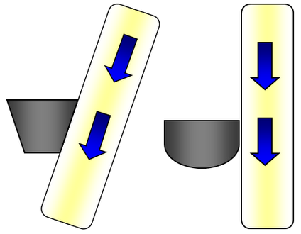2. ao olharmos a face ativa de frente, com a ponta voltada para frente, o lado de corte é o mais baixo.