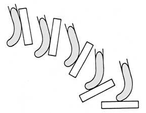 O movimento não deve ser feito por partes, retirando – o da superfície dentária, pois, assim ocorrendo, corremos o risco de não recolocar o instrumento no exato local onde o movimento foi interrompido, podendo ficar aquém ou além da área já raspada.