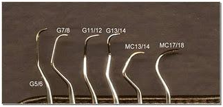 Curetas McCall: Apresentam fio de corte em ambas as faces da lâmina. Para completar o jogo de instrumental por nós utilizado, indicamos as de número 13 / 14 e 17 / 18.
