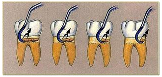 Para que a superfície seja efetivamente raspada, além do corte, angulação e movimento, o operador deverá estar com a mão apoiada o mais próximo possível ao dente a ser raspado. O apoio poderá ser feito no próprio dente.