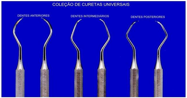 Comentário: Por apresentar as faces laterais retas, as curetas não se adaptam bem aos contornos curvos dos dentes e sua utilização costuma deixar superfícies anguladas nas faces dentárias. Por isto é aconselhável a complementação da raspagem com curetas.